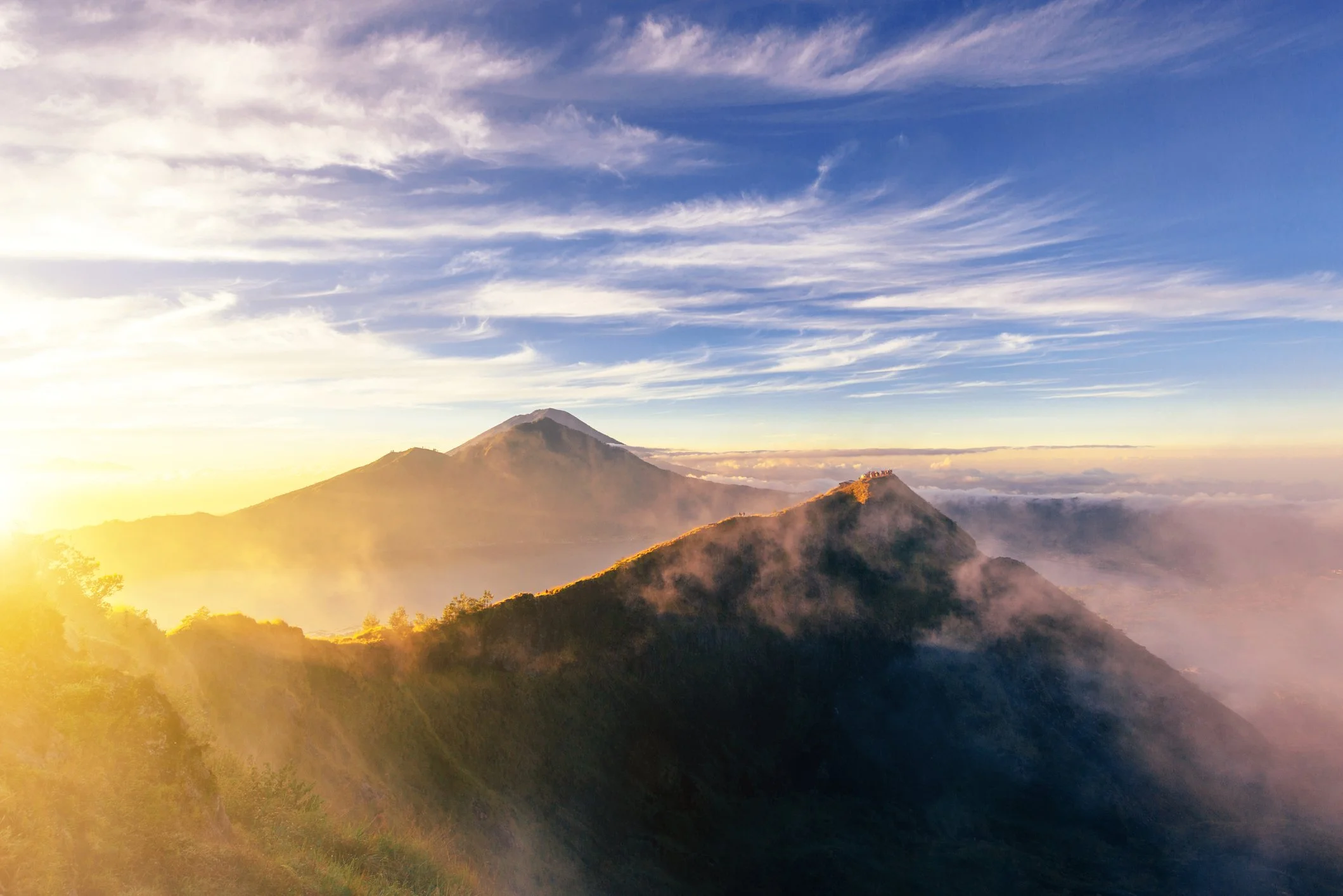 Hiking to the summit of Mount Batur provides panoramic views of the surrounding landscapes, including Lake Batur.