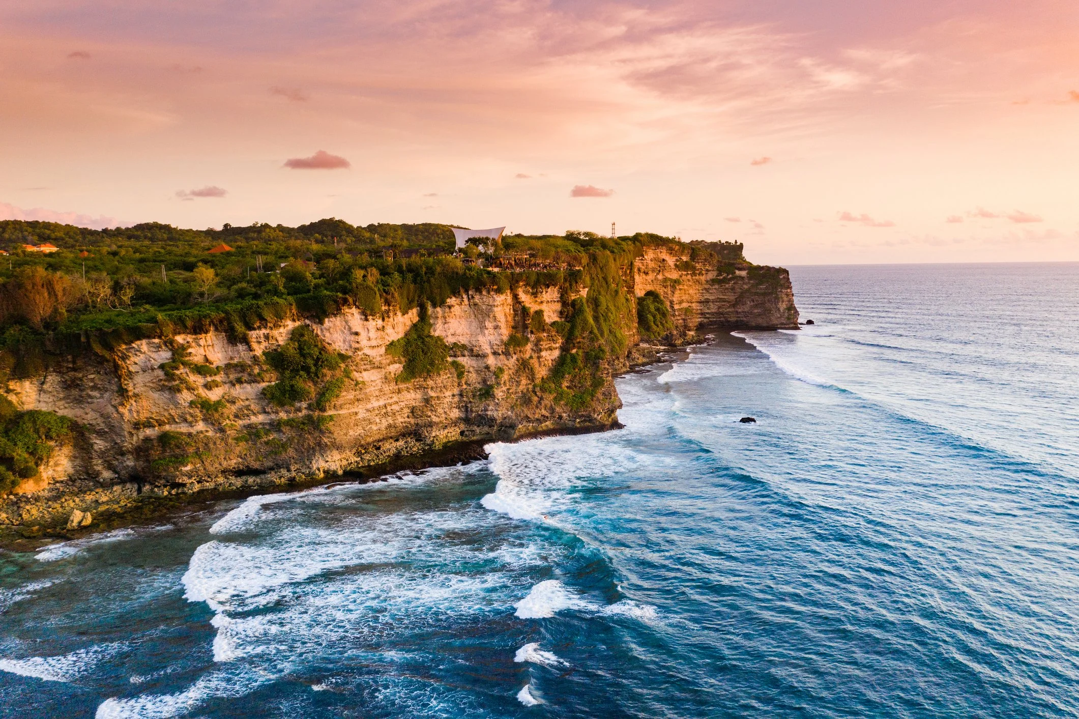 Uluwatu Temple, perched on a dramatic cliff, offers panoramic views of the Indian Ocean.