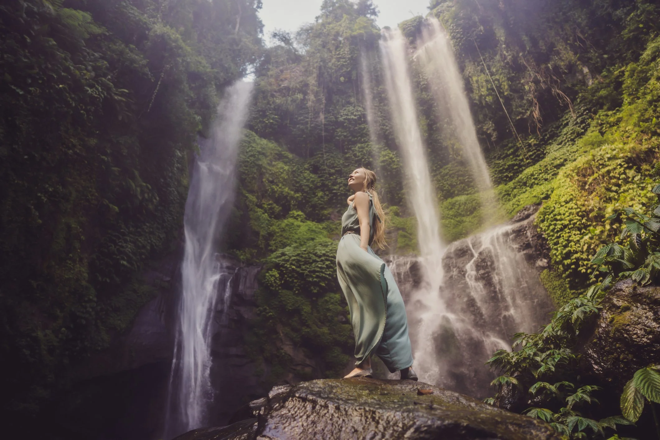 Sekumpul Waterfall, located in the northern part of Bali, is a collection of several cascading falls surrounded by lush jungle.